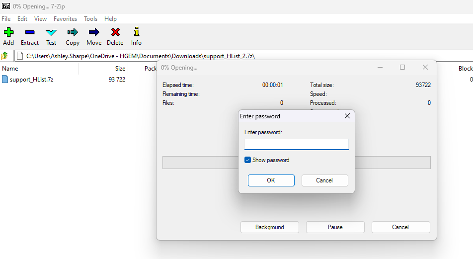 2. Open up 7zip application, navigate to the file and then