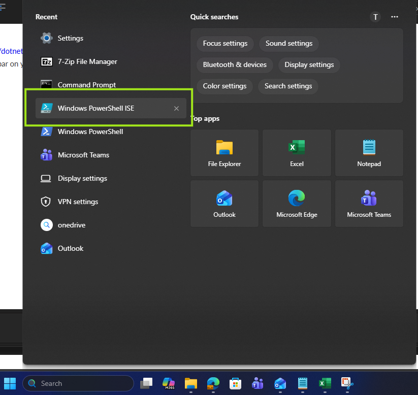 2. Open Windows PowerShell ISE - this can be searched for in the search bar on your Windows Taskbar.